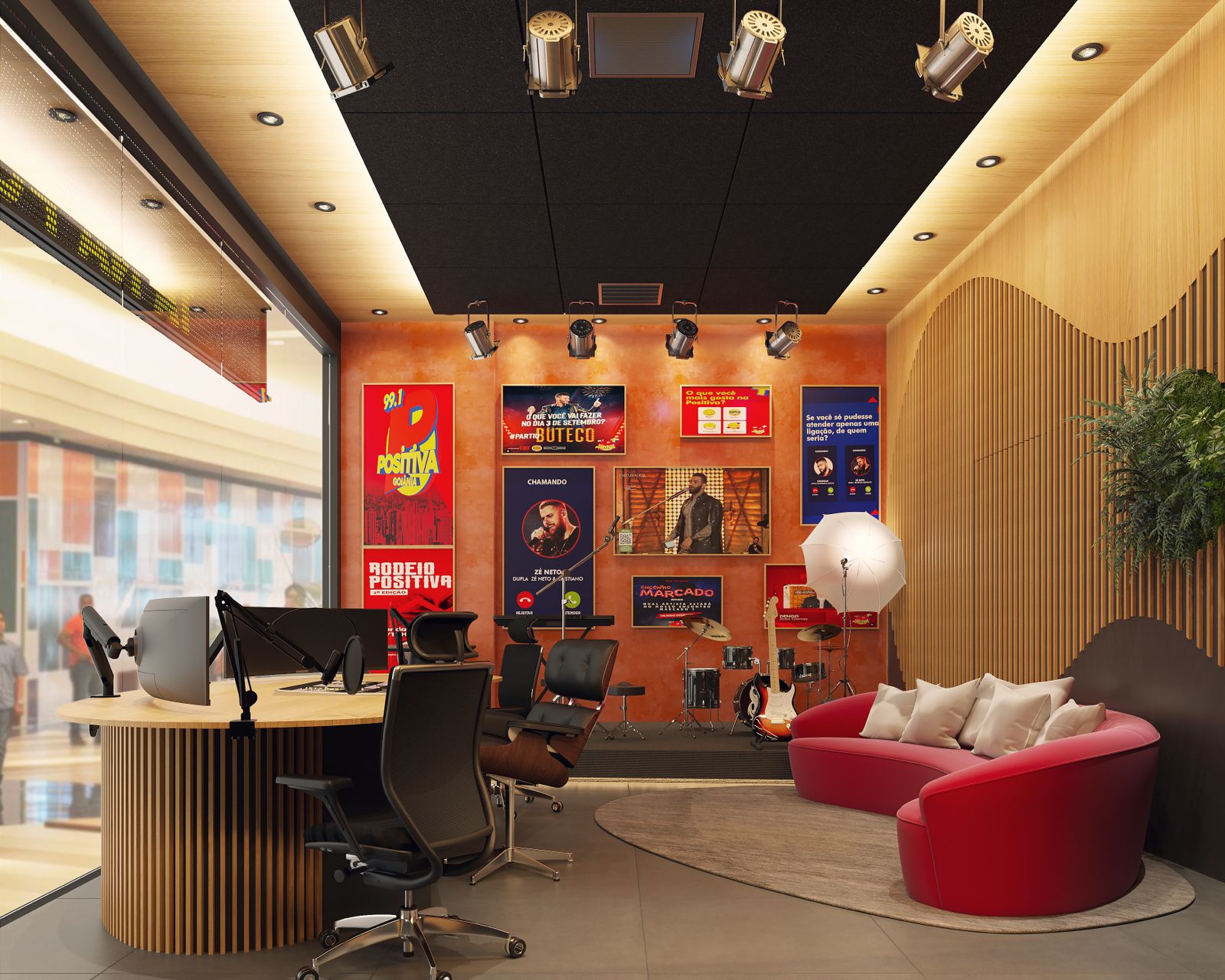 A nova casa da Positiva FM permite um contato mais próximo com o ouvinte, pois no local há um cantinho especial para recebê-los, conta com um espaço acolhedor também para os artistas e convidados que agora terão um palco exclusivo. Salas de podcast e melhor integração com toda equipe da família Positiva.