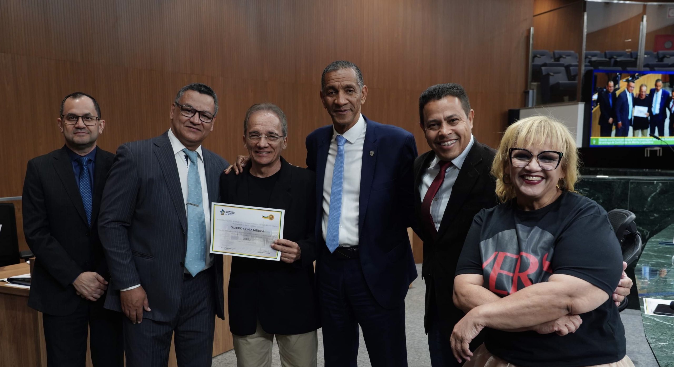 Após o fim dos discursos, o radialista José Carlos Rangel recebeu o Certificado do Mérito Legislativo, para em seguida discursar representando os homenageados. Ele lembrou histórias que acabaram virando folclore no universo radiofônico goiano, nesses 57 anos em que atua no meio.