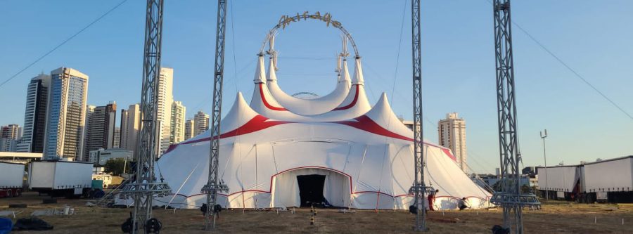 O circo conta com 800 toneladas de equipamentos, compatíveis com a estrutura de grandes festivais de música no Brasil Quem passa pelas proximidades do Flamboyant Shopping já está reparando algo diferente na Arena Flamboyant. É.